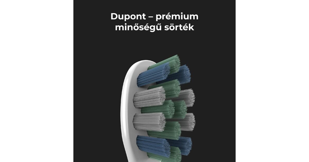 The device vibrates at up to 46,000 vibrations per minute, removing plaque and food particles ten times more effectively than a manual toothbrush without irritating gums or damaging tooth enamel. DuPont, medium-hard bristles clean gently while delivering maximum impact.