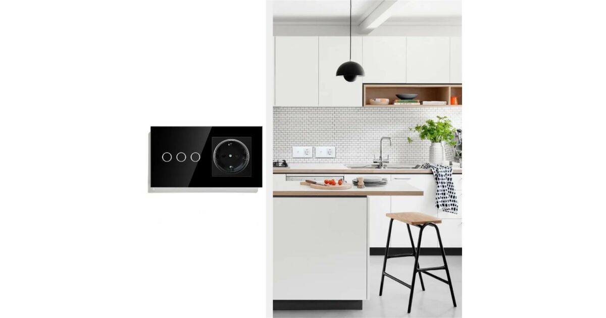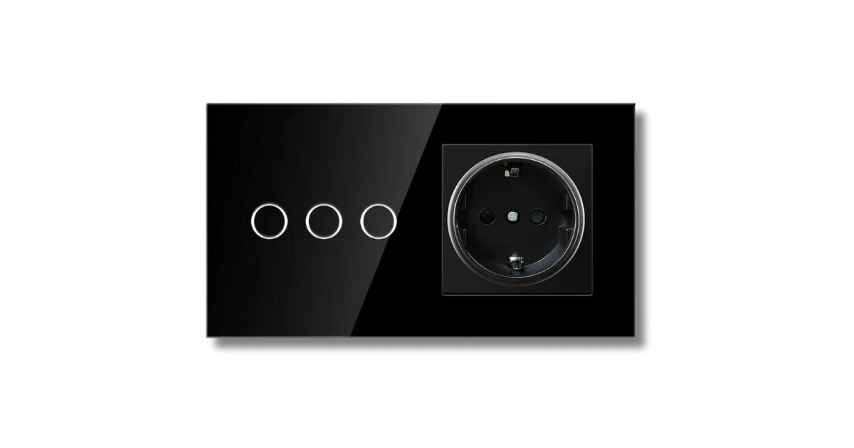 Upgrade your home with this stylish and functional touch switch and socket! The iUni 3Y model features a black, tempered glass frame and includes three switches and an integrated socket. Easy operation and safety features make it a perfect choice for any room.