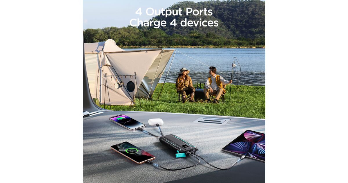 This compact, durable power bank is perfect for travel, hiking, or even emergencies. Thanks to the built-in USB-C and Lightning cables, you can charge up to 4 devices at once, whether it's a phone, tablet, or even a smartwatch.