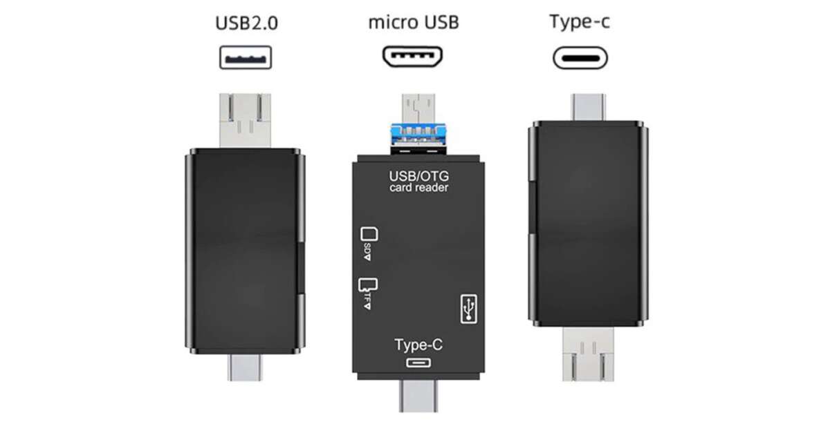 - 5-in-1: Micro SD, SD, USB, USB-C, and Micro USB connectors