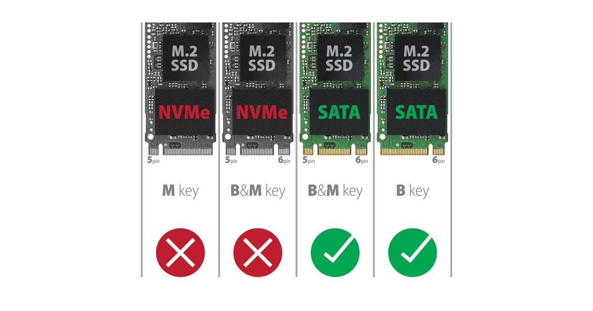 | Drive type | SATA M.2 SSD (B+M-key and B-key) |