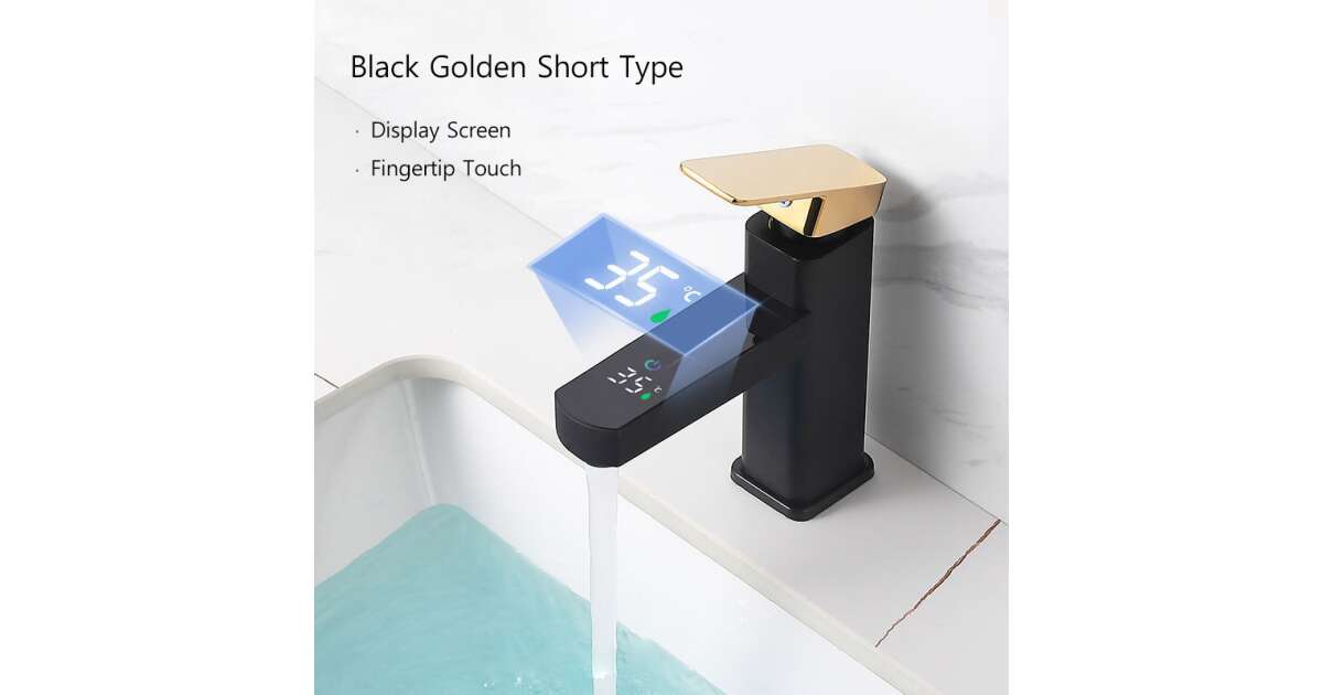 This Scandinavian-inspired sink faucet is a stylish and practical addition to your bathroom. The matte black and gold combination gives it an elegant look, while the LCD display lets you easily check the water temperature.