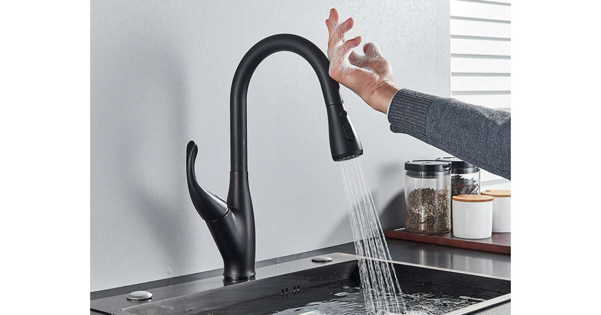 Blackswan M168 Sensor Kitchen Faucet, 2 Modes & Pause Button, Black Model, 44.5 cm description of