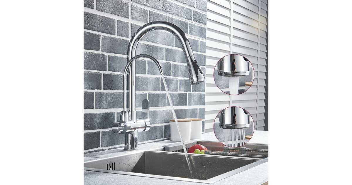 This stylish, chrome kitchen faucet is perfect for modern kitchens. It boasts a Scandinavian design and practical features to make your daily chores easier.