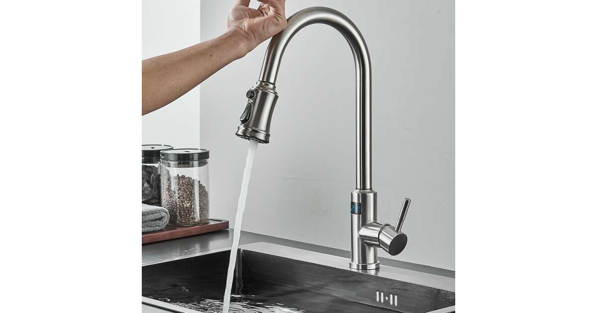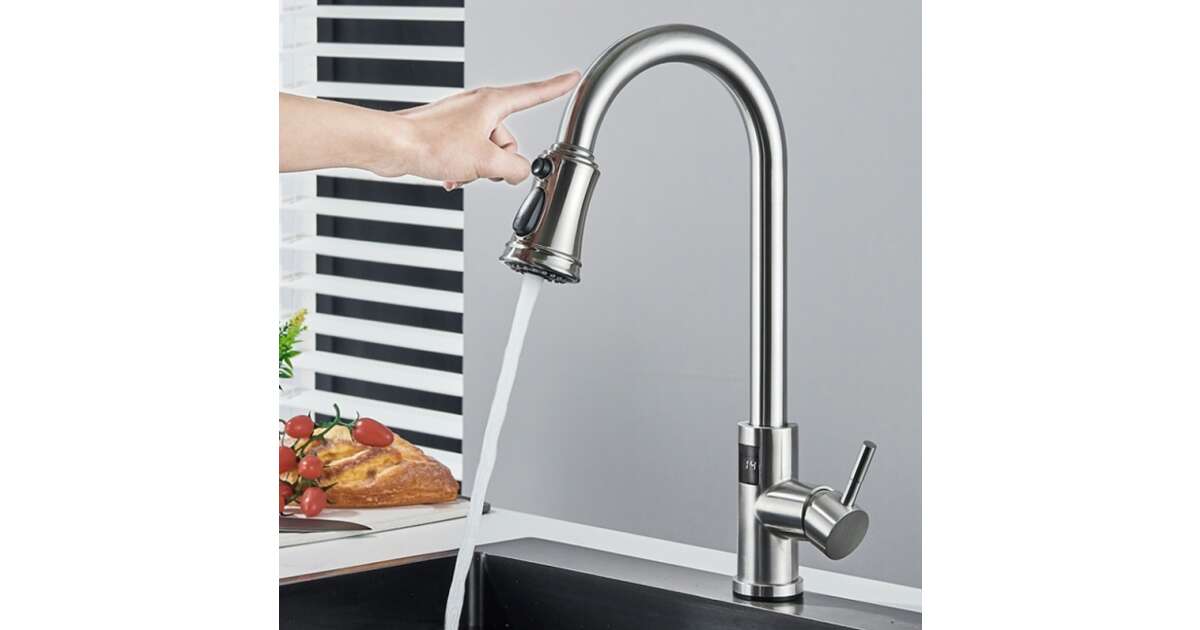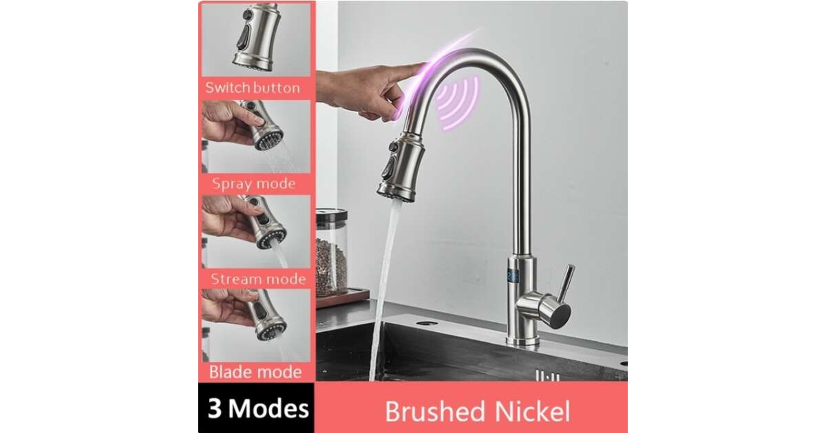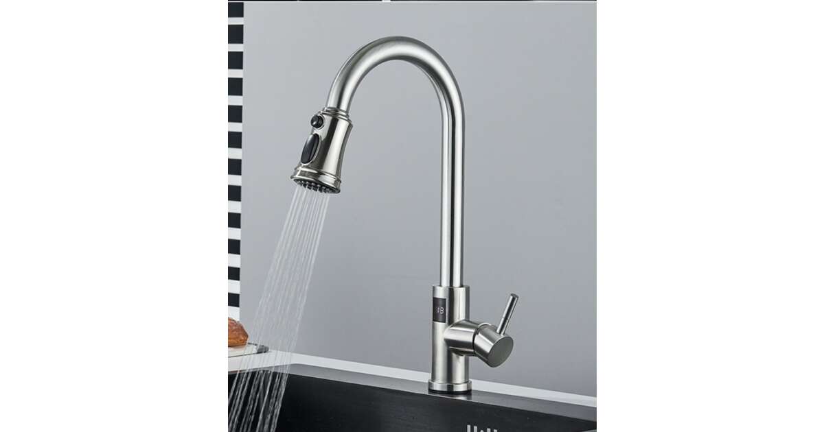 Blackswan M326 Kitchen Faucet, Nickel model with LCD display, sensor and 3 modes, 44 cm size description of