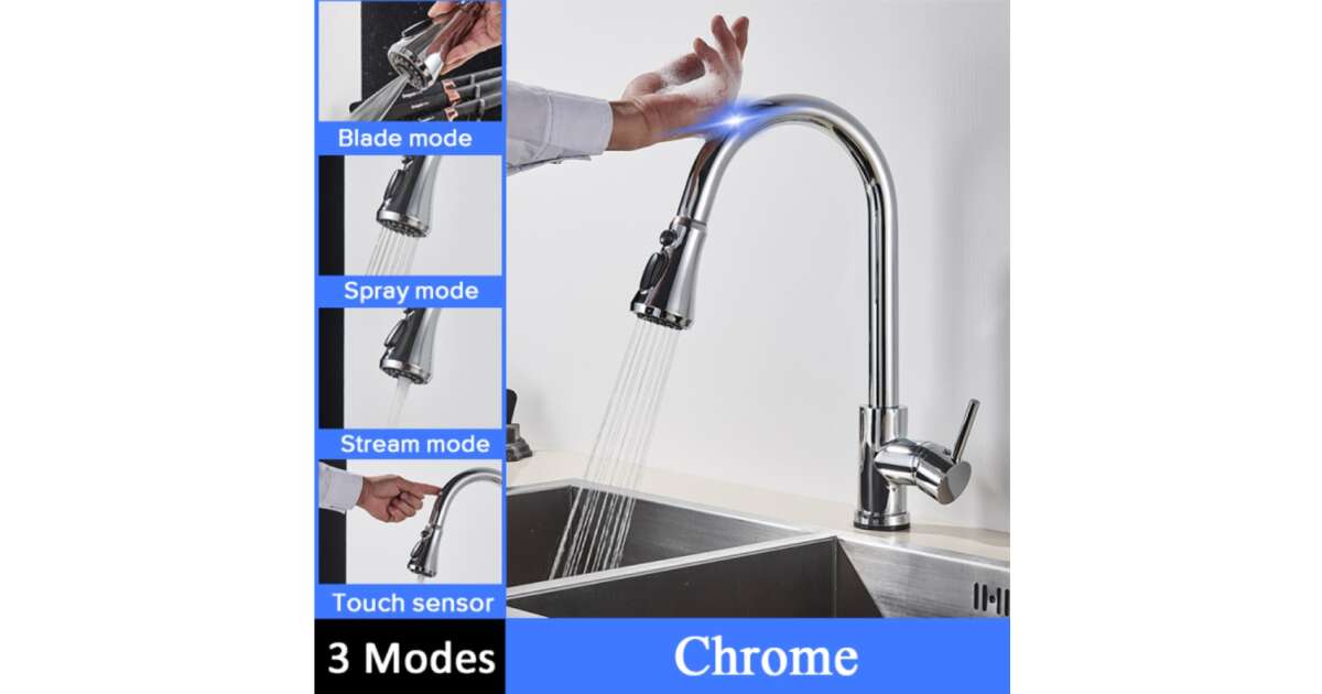 Blackswan M83 Touch Sensor Kitchen Faucet - 3 Modes, Chrome, 38 cm