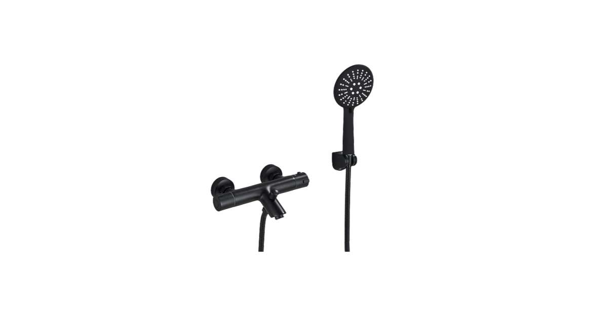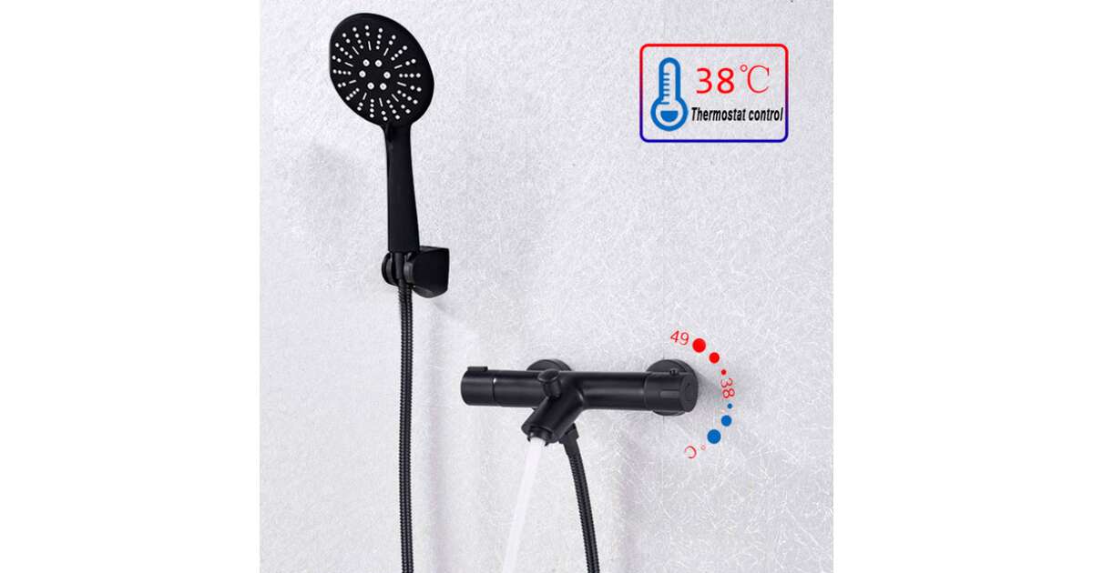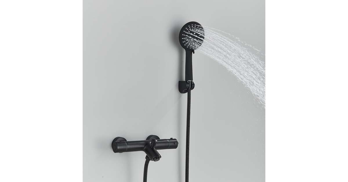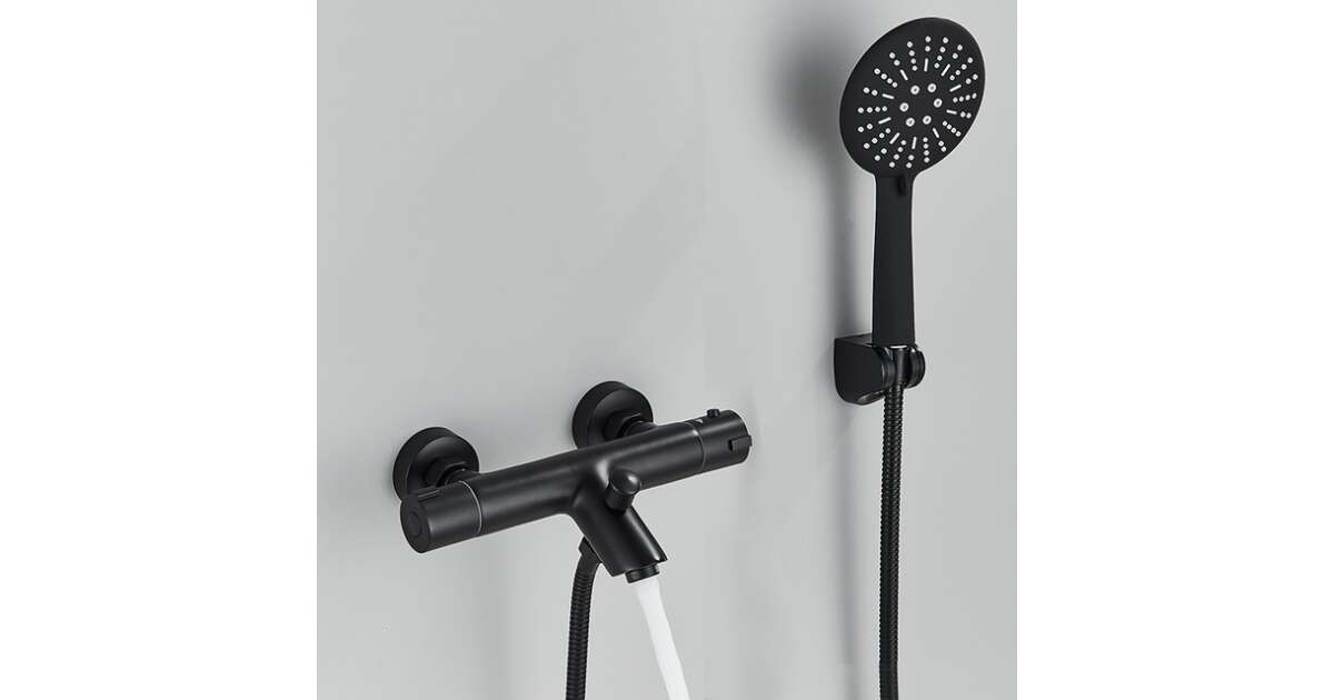 Blackswan M87 bathtub faucet, matt black model with thermostat and shower, 3 functions, size 26.7 cm description of