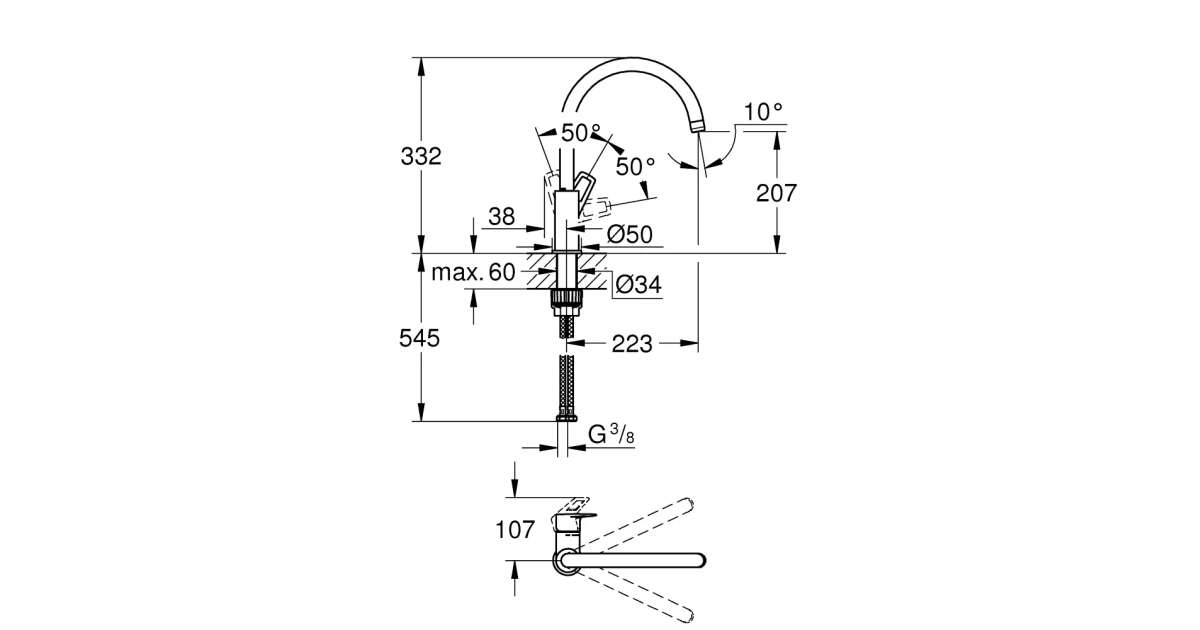 GROHE BauLoop single lever sink faucet with swivel spout (31368001) description of