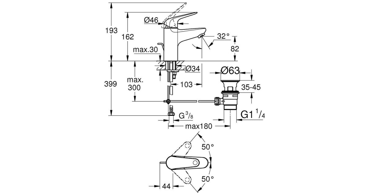 - GROHE Long-Life 28 mm ceramic cartridge: For precise and reliable operation, long term.