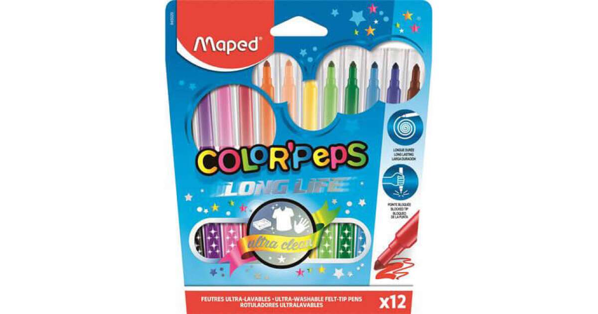 Maped Color'Peps Long Life Felt Tip Pens: 12 Washable Markers with 1-3.6 mm Line Width 🌈