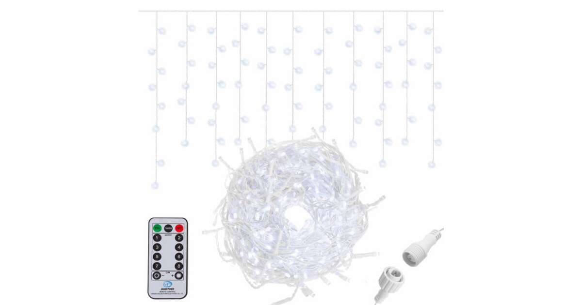 Transform your home or garden with this gorgeous Springos LED curtain light! At 12 meters long, with 300 cool white LEDs, and easily controlled brightness and light effects via remote, it's perfect for Christmas, birthdays, any celebration, or even everyday mood lighting.