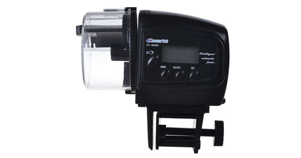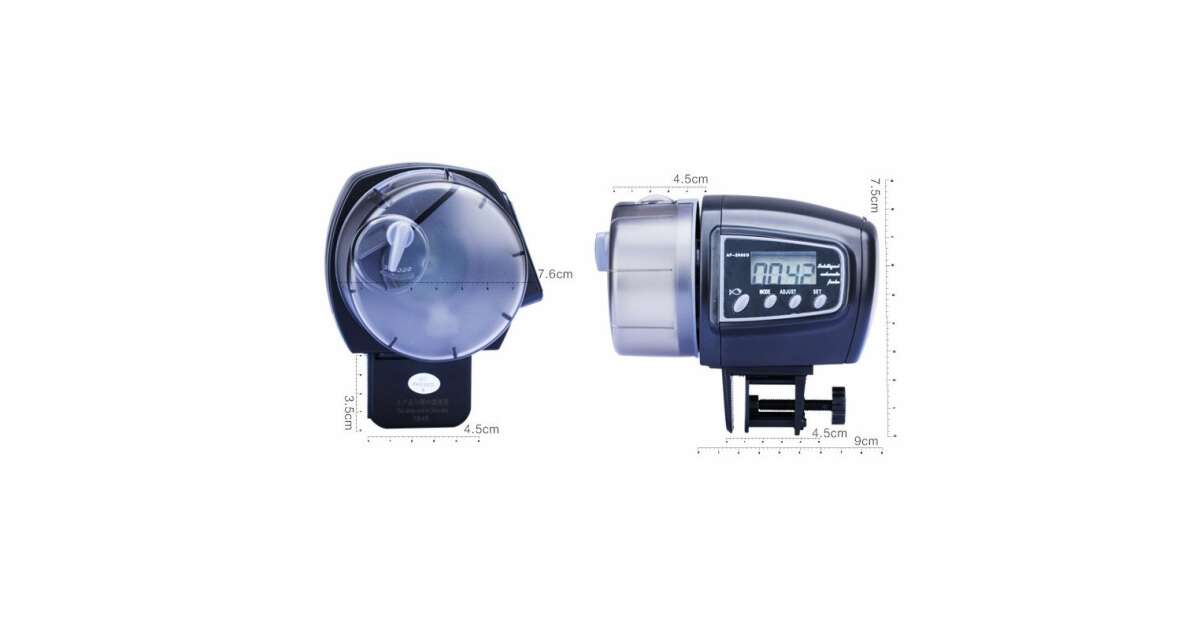 Automatic Fish Feeder with LCD Display, Battery-Powered description of