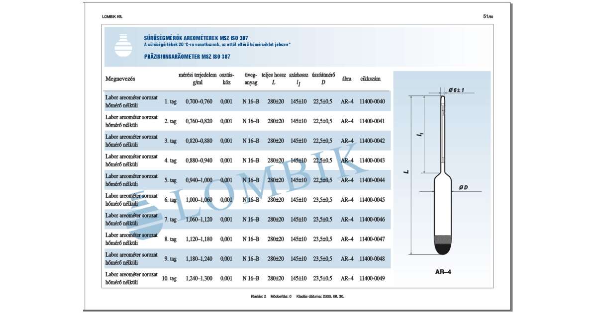 Laboratory hydrometer 1,060-1,120 7-segment without thermometer description of