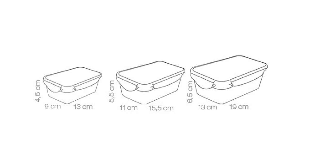 FRESHBOX Rectangular Food Storage Container Set, 3 pcs, 0.2, 0.5, 1.0 l