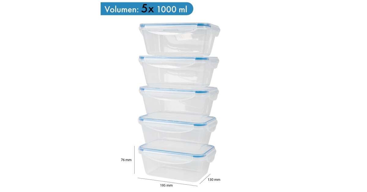 Classbach Food Storage Set, C-FHD4007K, 5-piece, 1000 ml, BPA-free plastic, airtight, dishwasher safe, microwave and freezer safe, transparent