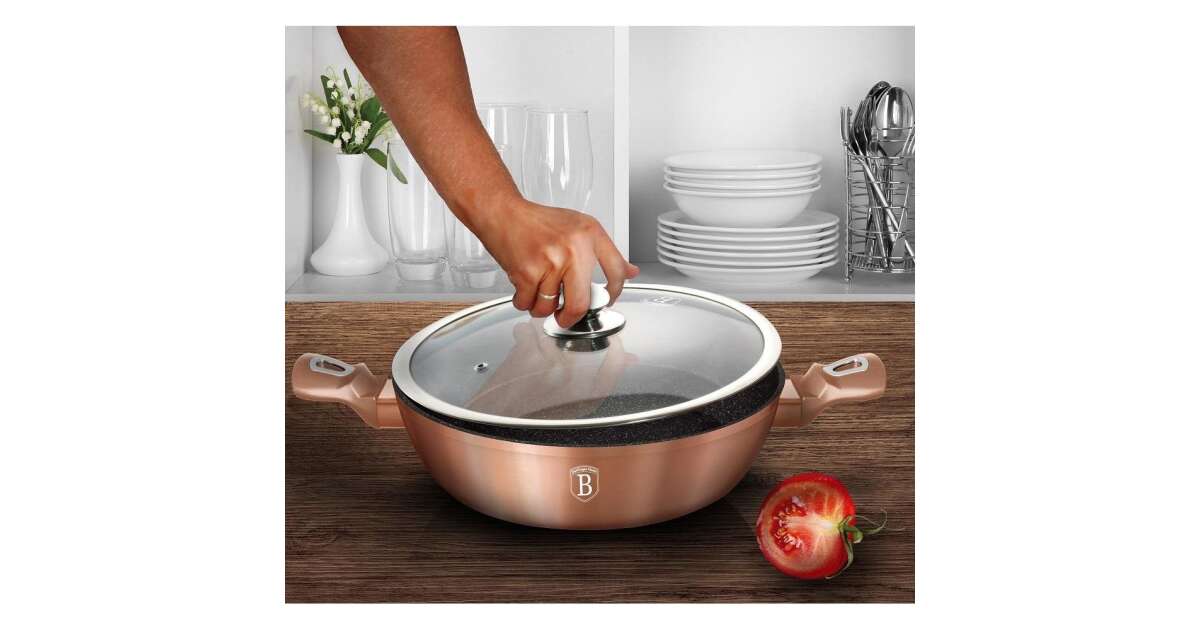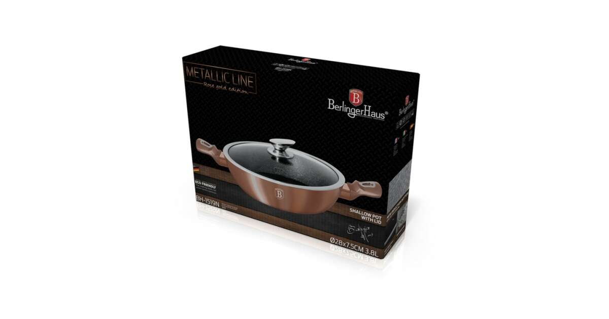 Berlinger Haus BH-1519N Metallic Line Rose Gold Edition Low Casserole with Lid 28cm description of