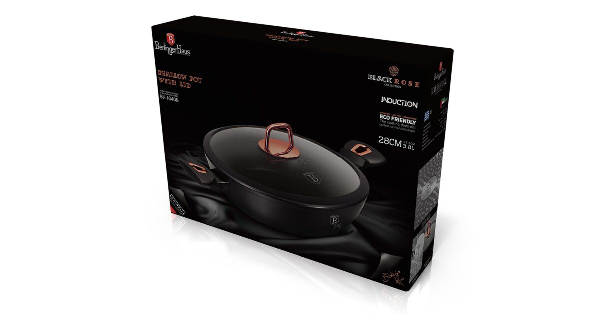 Berlinger Haus BH-1640N Low saucepan with lid, 28 cm, Black Rose Collection description of