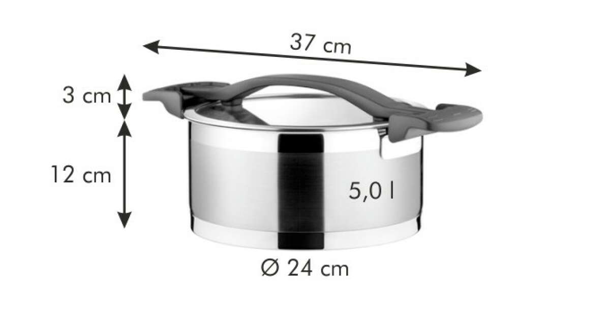 This Tescoma Ultima pot revolutionizes cooking thanks to its unique, multi-functional lid. With a 5-liter capacity, you can cook enough food for the whole family! Made from premium 18/10 stainless steel, it's super durable and easy to clean. It's suitable for all hob types (gas, electric, ceramic, induction) and is dishwasher safe.