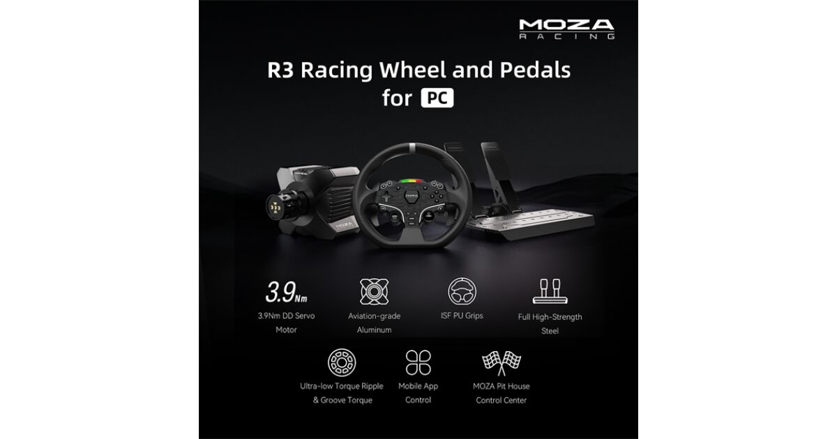 MOZA R3 Racing Controller PC SetExperience the next level of racing with the MOZA R3 package. With its impressive 3.9 Nm of direct drive torque, customisable riding modes and rugged aluminium, leather and steel construction, it offers unrivalled quality and durability. The MOZA Pit House control centre offers convenient tool management, setting adjustments and preset loading. Upgrade your racing equipment today and experience a new era of performance and precision.This is a complete simulator kit that includes a base, steering wheel, 2 pedals and a table clamp. The MOZA R3 combination features a direct drive system (Direct Drive) to start your virtual racing. The components are carefully designed, easy to adjust and adapt to your individual level of DD base choice. MOZA Pit House Control Suite - One-click launch software