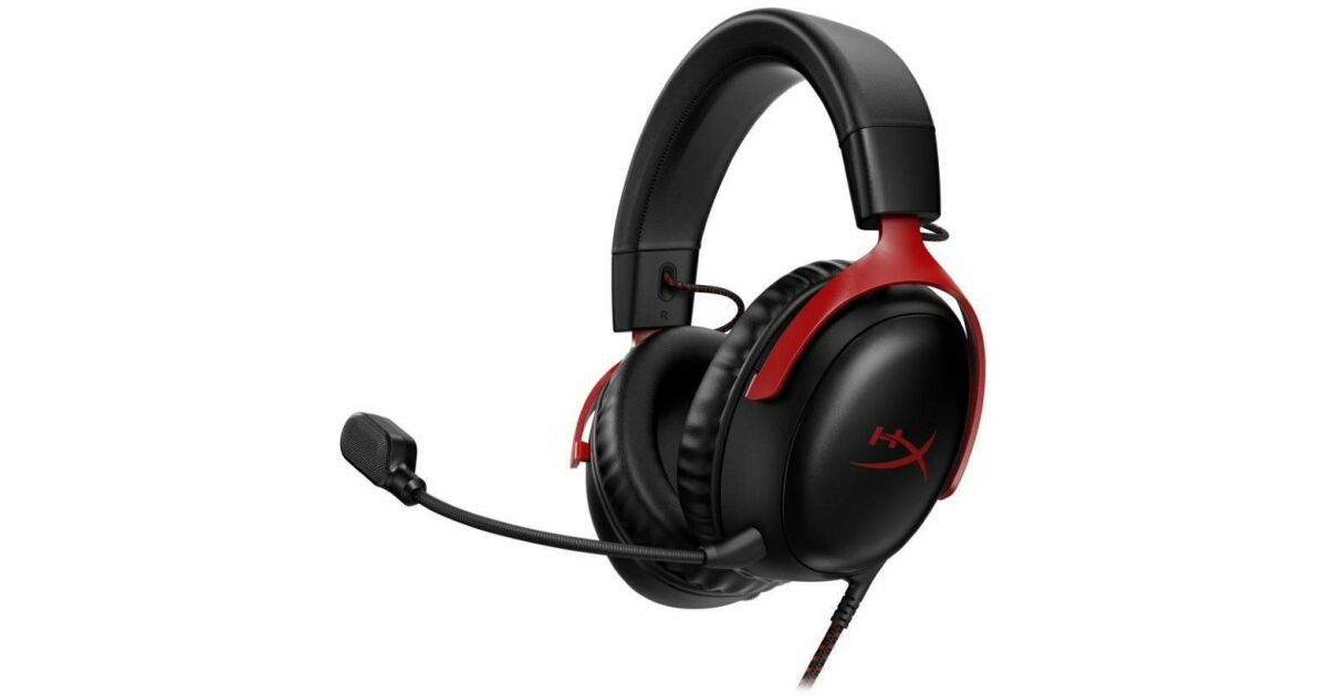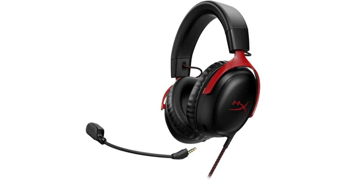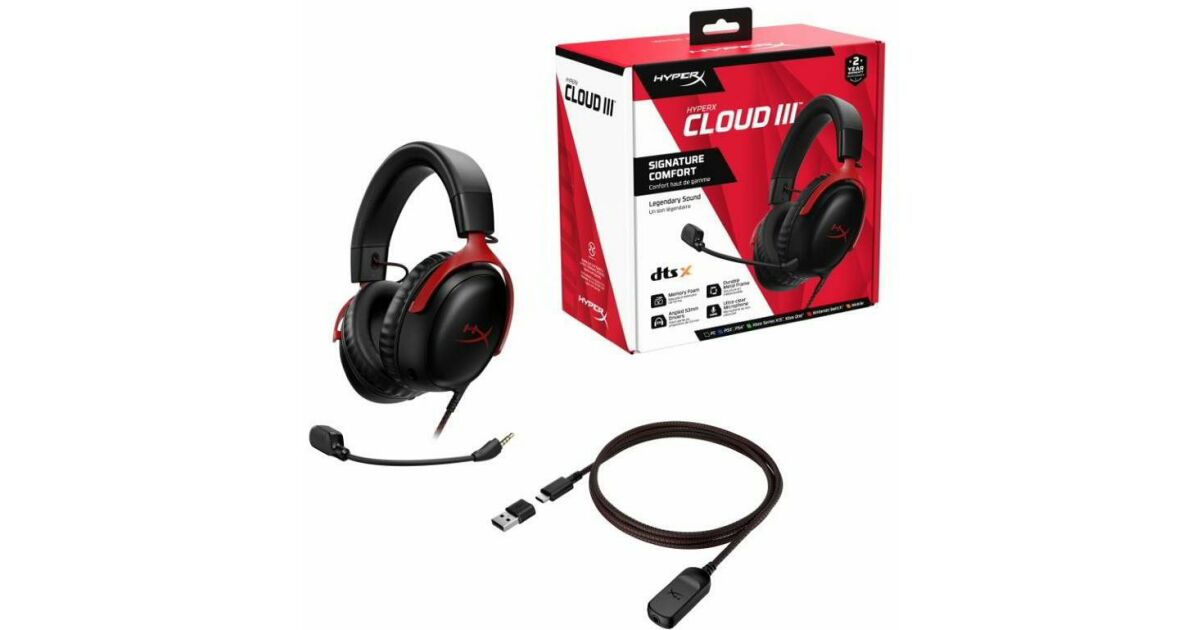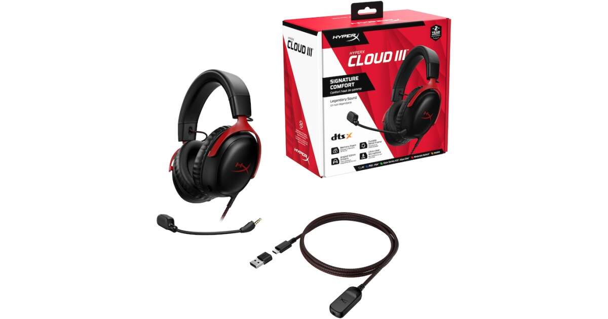 HyperX Cloud III Gaming Headset, DTS Headphone:X Spatial Audio, 53 mm drivers, detachable microphone with metal mesh, noise cancellation and LED indicator, 3.5 mm jack, USB-C, USB-A, memory foam earcups, multiplatform, black/red shopping: