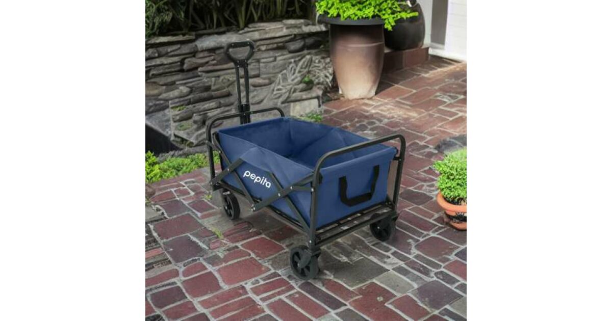 Important! - The wheel of the trolley is deformed and has aesthetic defects as shown in the picture, therefore the product is depreciated! The Pepita foldable trolley in dark blue is the ideal solution for everyday transport, whether shopping or picnics! Thanks to its durable material, it will be your reliable companion that can easily carry any load. The foldable design allows you to store it easily, so it won't take up much space in your car or at home. The handy handle and large wheels make it easy to manoeuvre, whether you're taking it straight to the market or to the beach. Choose the Pepita handcart and make transport and leisure activities even more convenient! Features. 98% polyester, 2% spandex - PU wheels that turn easily - Flexible adjustable handle - Foldable - Size: 85 x 45 x 47 cm - Maximum load capacity: 80 kg