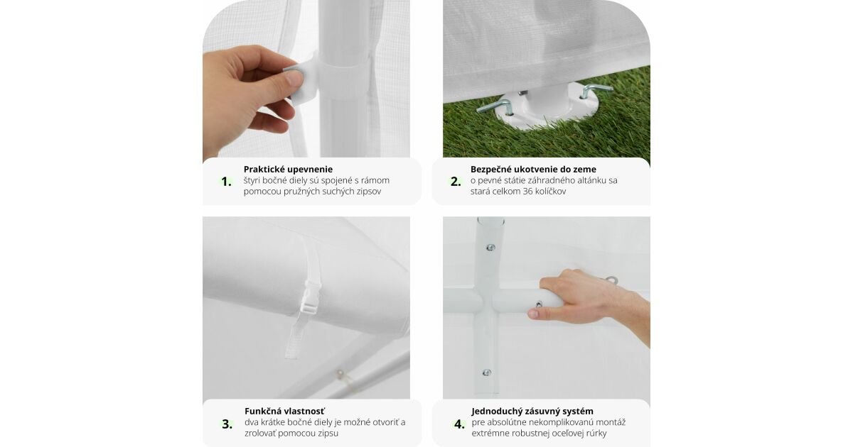 - Practical Velcro fasteners: Easy and quick attachment of side and gable sections.