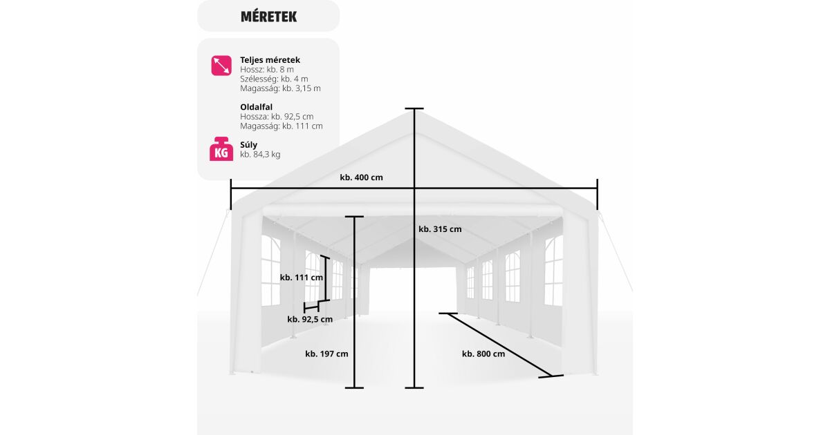 | Gable sections (W x H) | approx. 394 x 308 cm |