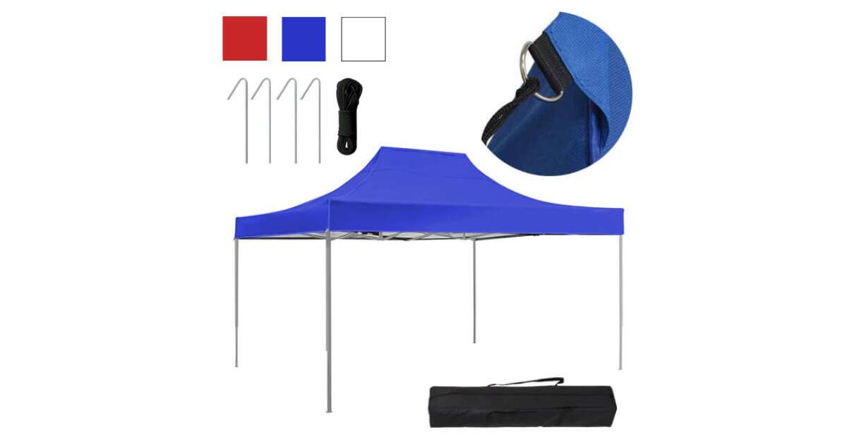 This strong, metal-framed collapsible gazebo is ideal for various outdoor events, camping, garden parties, and sporting events. It's quick and easy to set up, and its height is adjustable, so it perfectly adapts to your needs. Gazebos are available in different sizes, colors, and types, so you can find the perfect one for you.