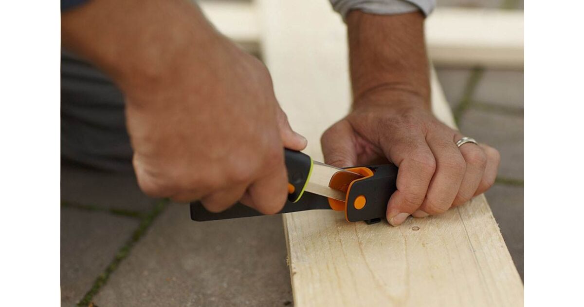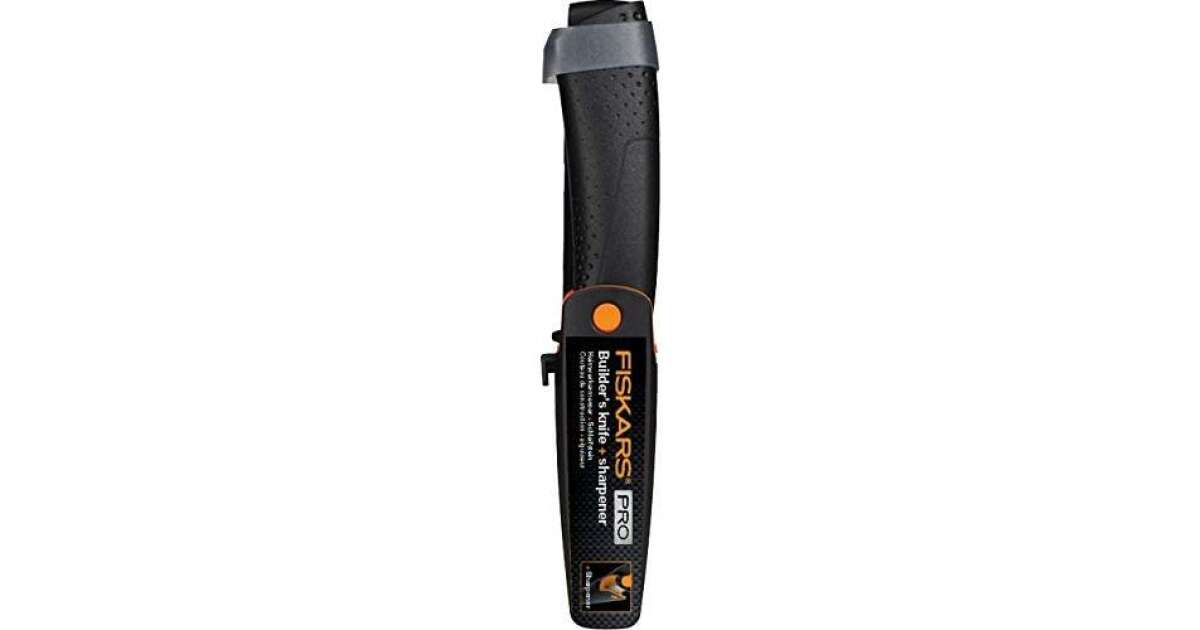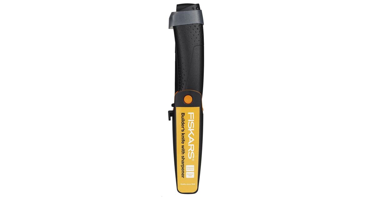 -Fiskars Knife for construction work, with built-in sharpener description of