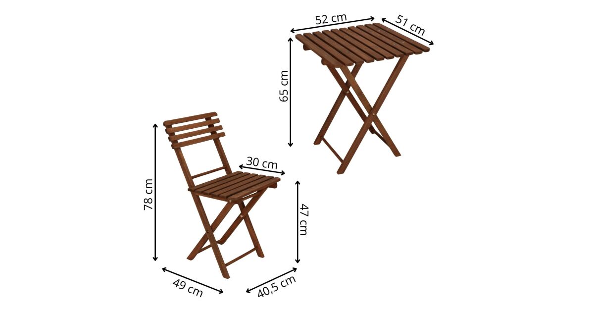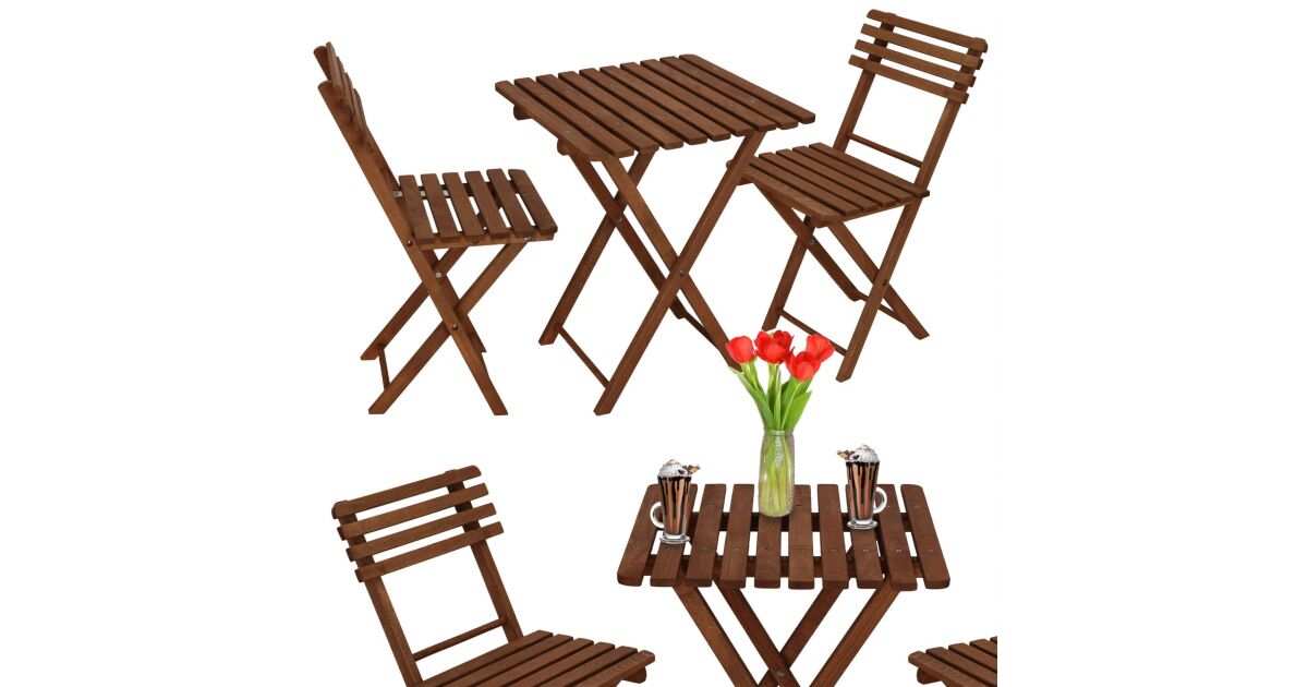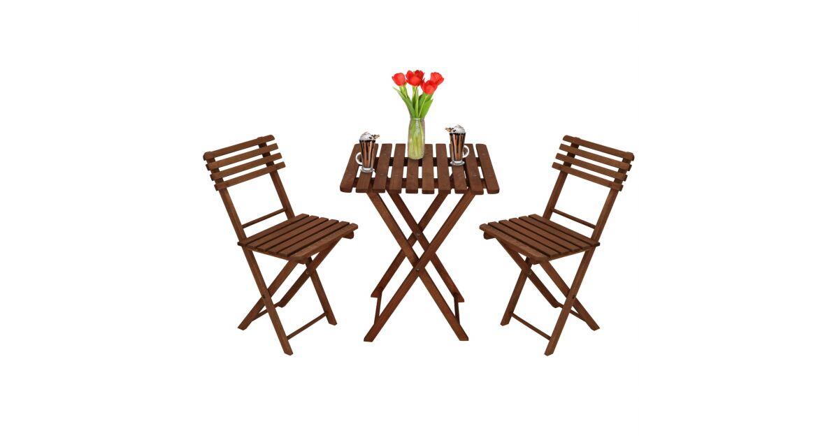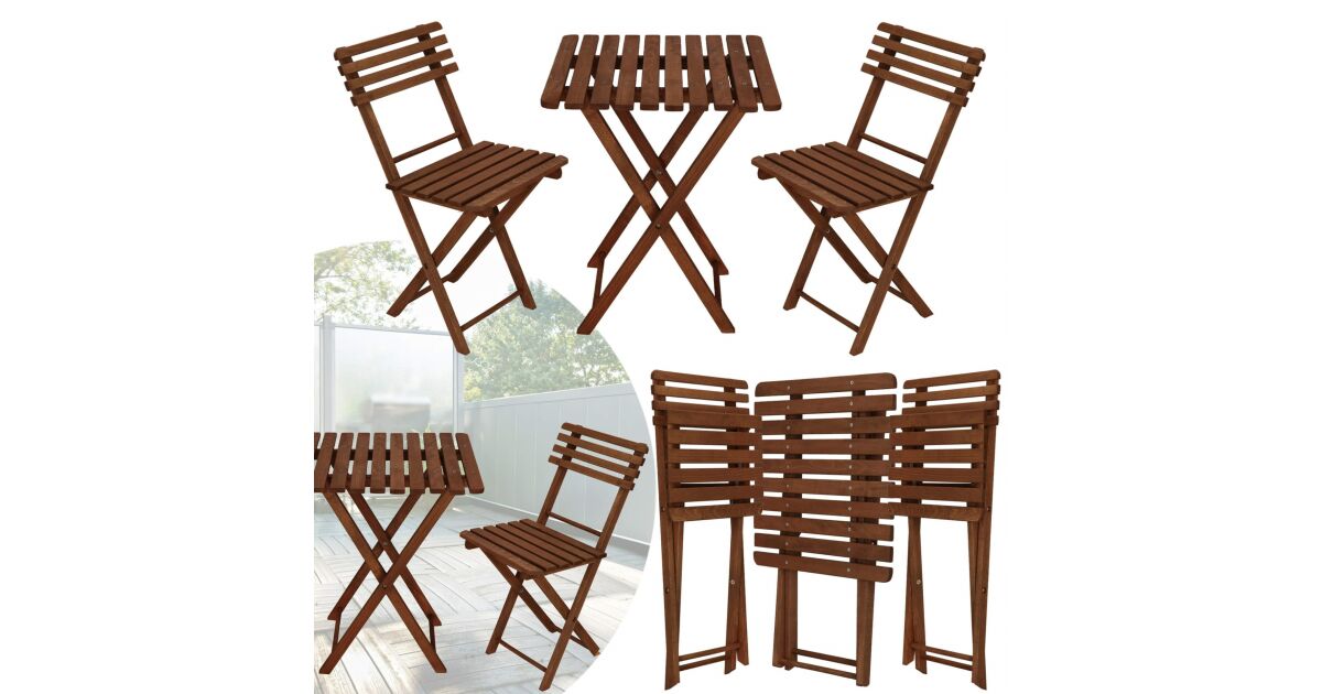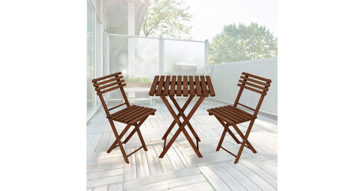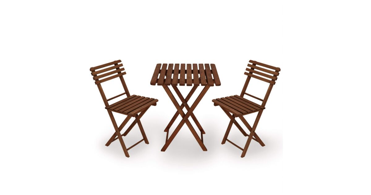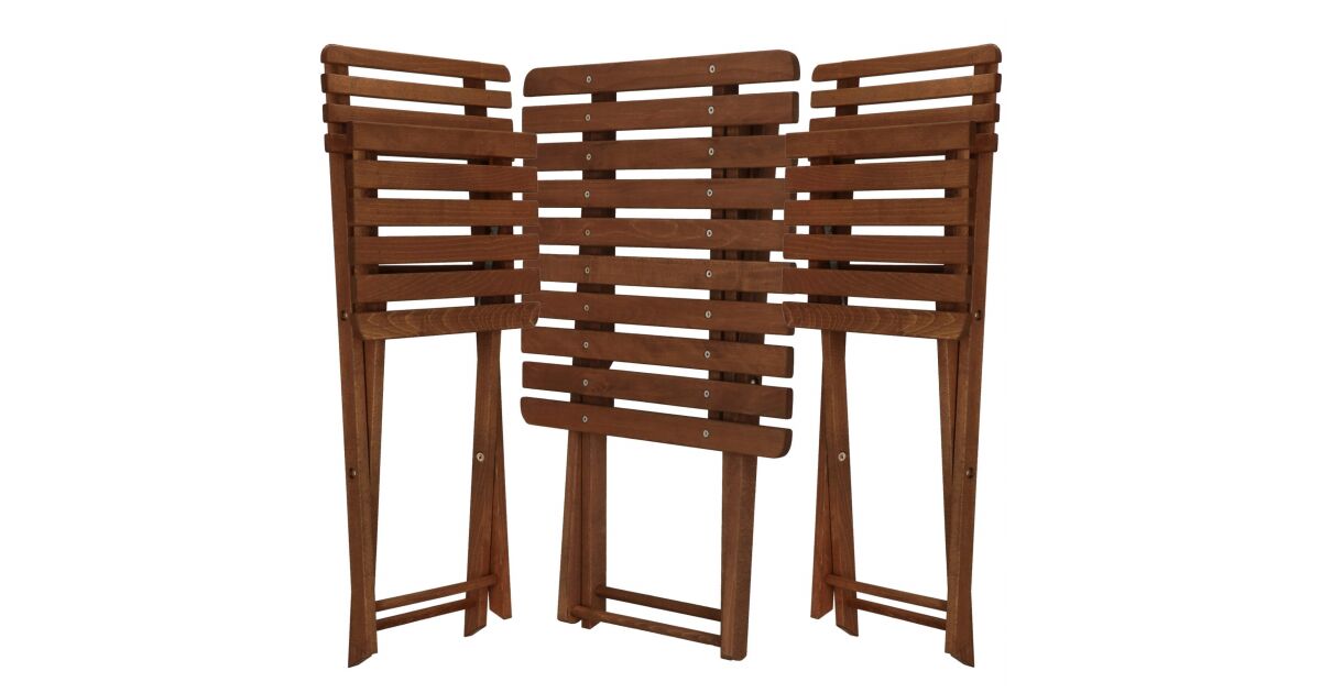 Folding beech wood balcony set with 2 chairs and table, dark brown