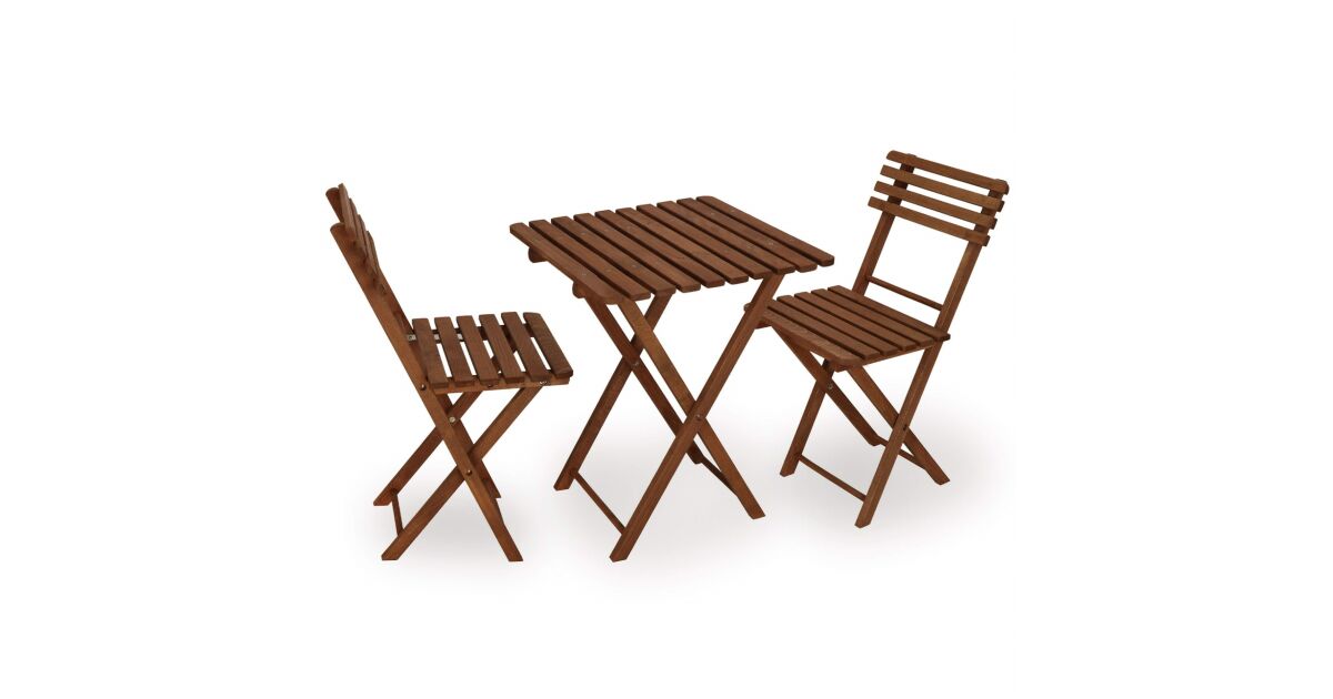 Want a compact yet sturdy seating area for your balcony or small terrace? This dark brown impregnated beech wood balcony set offers two folding chairs and a handy table, so you can enjoy breakfasts and evening conversations in space-saving comfort.