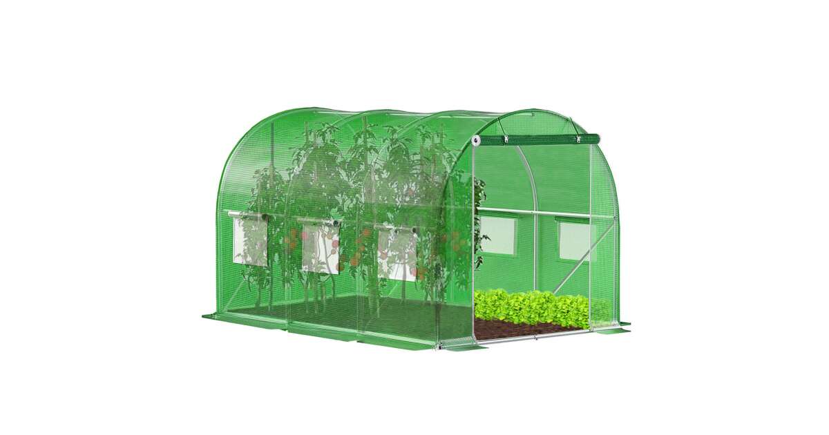 This 3x2x2 meter Springos tunnel greenhouse is the perfect solution for gardening, protecting your plants from wind, rain, and pests. It is made of strong, durable polyethylene film with a built-in polypropylene mesh for better ventilation. 6 windows with mosquito nets ensure proper air circulation.