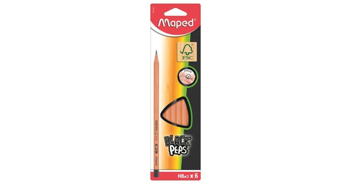 - 1 set of graphite pencils, HB, triangular, MAPED, black - 6 pcs/blankPacking: 6 pcs/blank triangular shape for more comfortable use