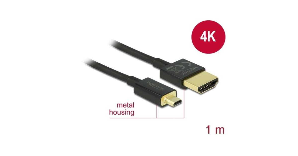 This Delock High Speed HDMI cable is the perfect choice for displaying 4K content between devices with Micro HDMI (e.g., camera, tablet) and TVs or monitors with HDMI-A ports. The short, metal-enclosed connectors and thin cable offer a practical and elegant solution.