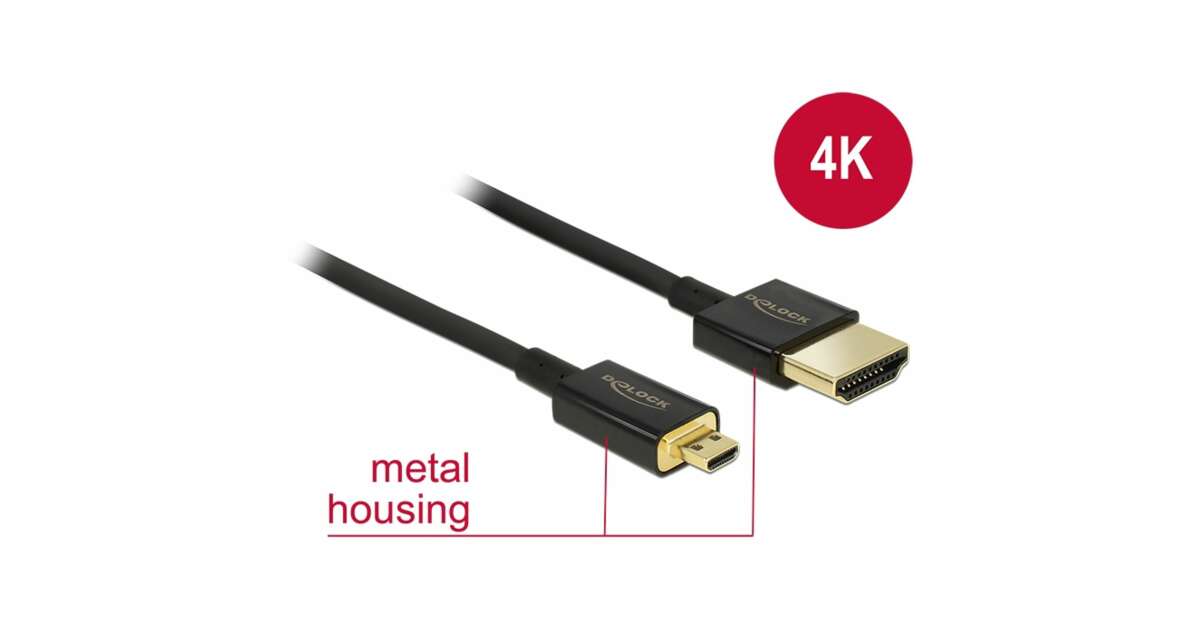 Delock High-speed HDMI cable with Ethernet - HDMI-A connector plug > HDMI Micro-D connector plug, 3D