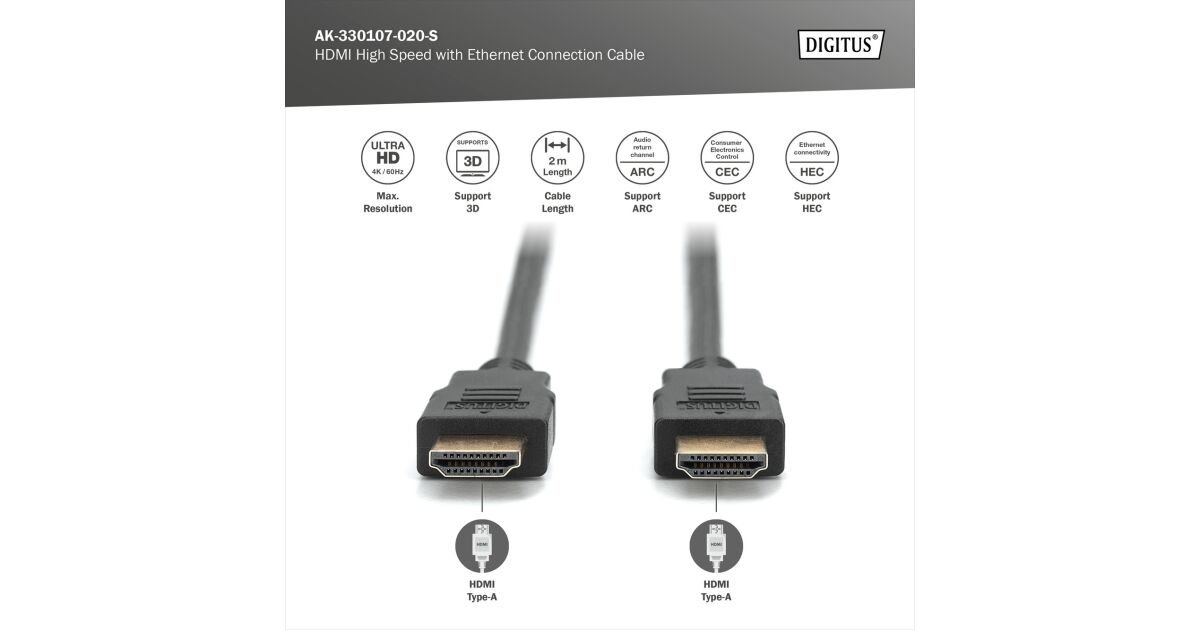 DIGITUS HDMI High Speed with Ethernet Connecting Cable - HDMI Type-A Male/HDMI Type-A Male - 5 m description of