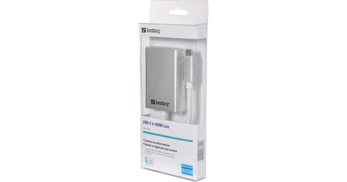 Sandberg Cable Adapter - USB-C to HDMI Link (silver; USB-C input; HDMI (female) output; 2048x1152@32bit) reviews