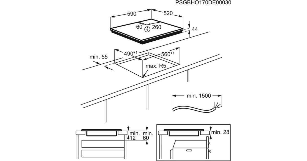 | Rear right zone | 1800/2800 W / 180 mm |
