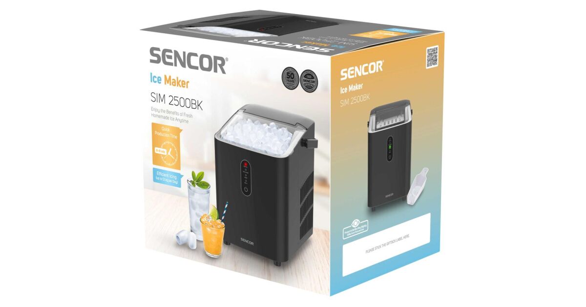 The Sencor SIM 2500BK ice maker is easily portable so you can take it with you wherever you go! Its small size means it fits comfortably in the car and the ergonomic handle makes it easy to carry. You can enjoy a cold drink anywhere without worrying about high energy consumption - it's extremely economical and quiet!