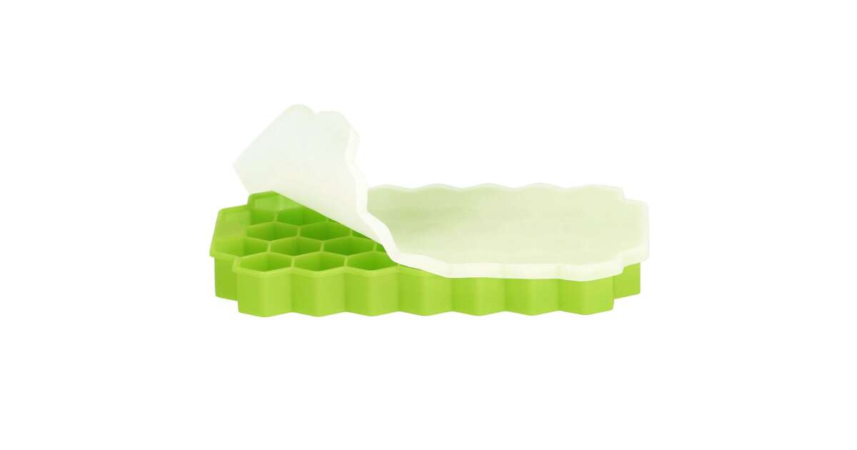 This Springos silicone ice cube tray makes 37 unique, honeycomb-shaped ice cubes perfect for any drink. The flexible silicone material makes it super easy to pop the ice cubes out. The included lid prevents spills while freezing.