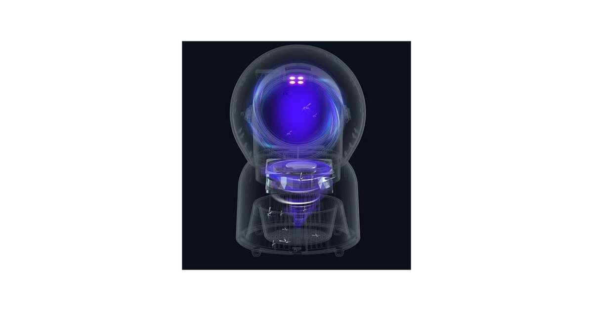 The trap uses mosquitoes' sensitivity to ultraviolet light. The light attracts the insects, which are then sucked into the device by the fan, from where they can't escape.