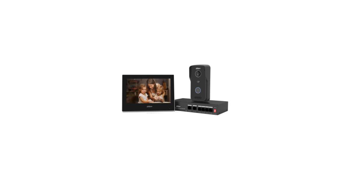 Dahua IP video intercom kit - KTP03 (VTO2111D-P-S3 + VTH2621G-P + PFS3006-4ET-36) description of
