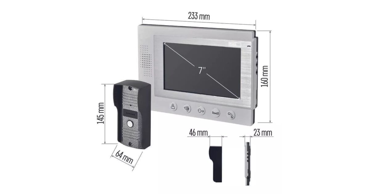 With the EMOS EM-07HD video intercom, you'll always know who's at your door, day or night. The 7" high-resolution color display provides a crystal-clear image of visitors, and you can even expand the system with up to two extra security cameras.