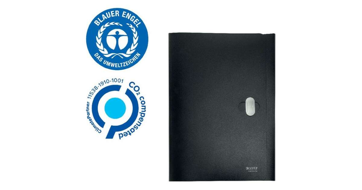 This premium-quality, 3-part LEITZ Recycle file folder is perfect for everyday use in the office, school, or at home. The folder is made from 80% recycled plastic, is 100% recyclable, climate-neutral, and holds the Blue Angel certification. The perfect combination of environmental consciousness and practicality!