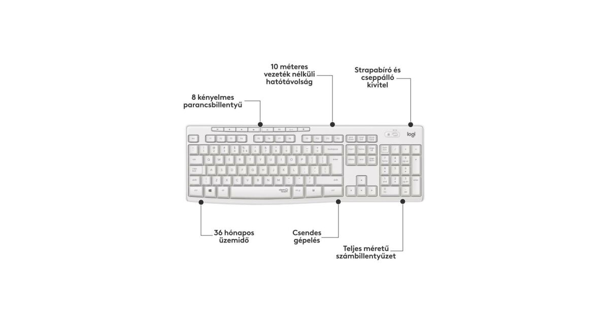 Logitech MK295 Silent Wireless Combo Keyboard Wireless RF Hungarian White