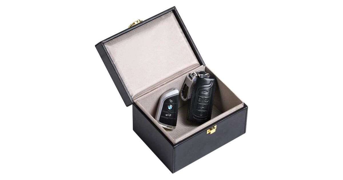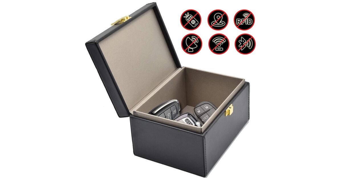 No more keyless car theft! 🔒 This stylish and secure Faraday cage protects your car keys and phone from remote access. The special shielding material prevents thieves from copying your key signal, so you can sleep soundly.😴