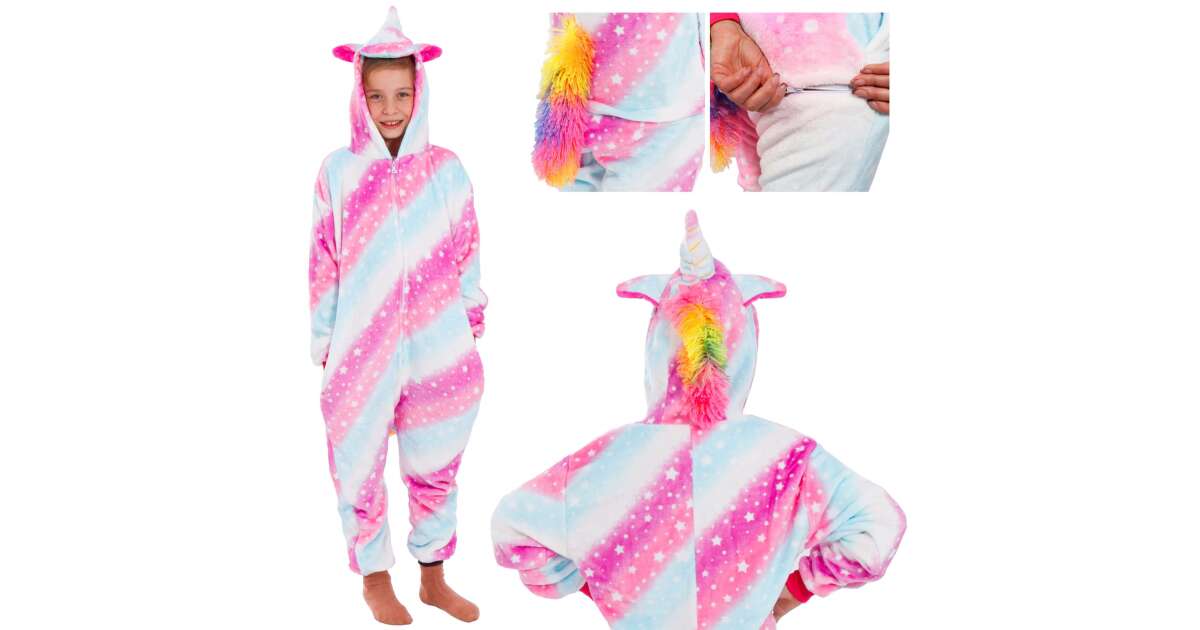 This Springos unicorn kigurumi pajama is the perfect choice for comfortable and fun nights! Made of soft, warm material, it provides a pleasant wearing experience even on colder evenings. The 130-140 cm size is ideal for most children in this age group.