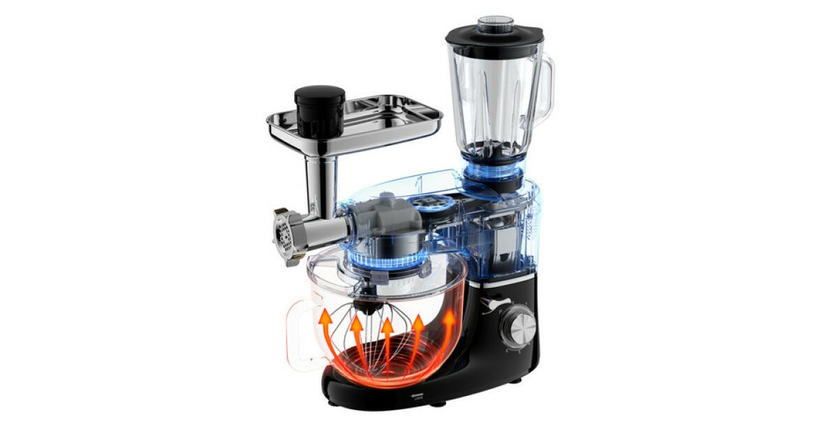 Multifunctional food processor with 6,2L mixing bowl, blender, meat grinder 2200W description of