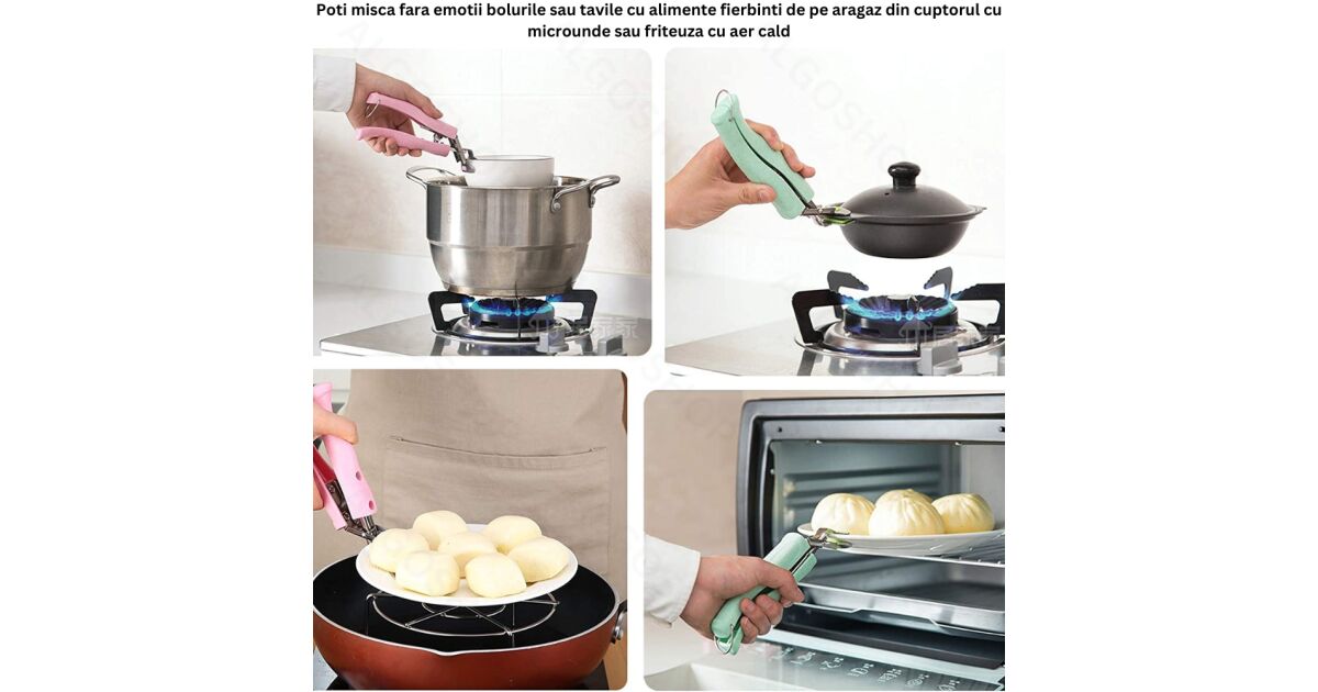 This universal handle is designed for the safe and comfortable handling of hot pots, dishes, and trays. Made of high-quality stainless steel and non-slip material, it ensures stability and prevents burns. The spring mechanism allows for easy and safe use.