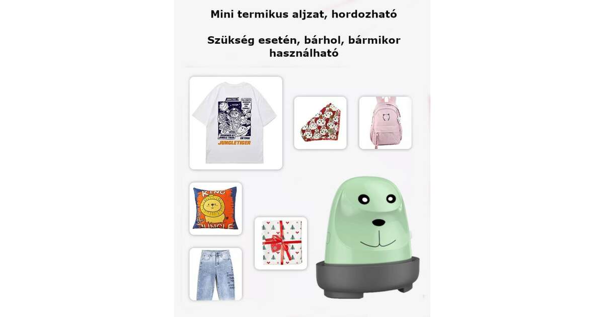 This compact and adorable mini heat press, shaped like a puppy, is perfect for personalizing clothing, t-shirts, bags, mugs, and other items. It's easy to use, portable, and features 3 heat settings for different materials.
